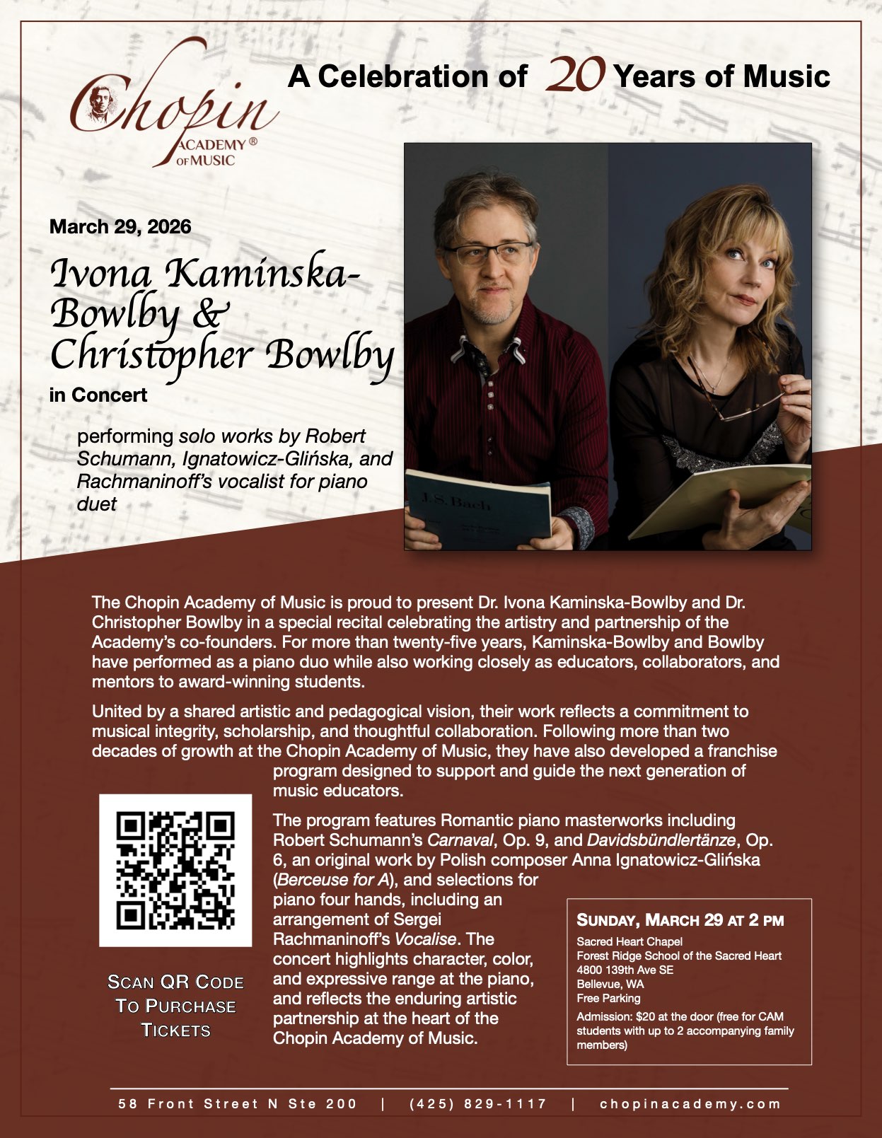 We invite students, families, and members of the community to join us for these concluding performances and masterclasses, and to share in the musical dialogue that has defined the Chopin Academy of Music for the past twenty years.