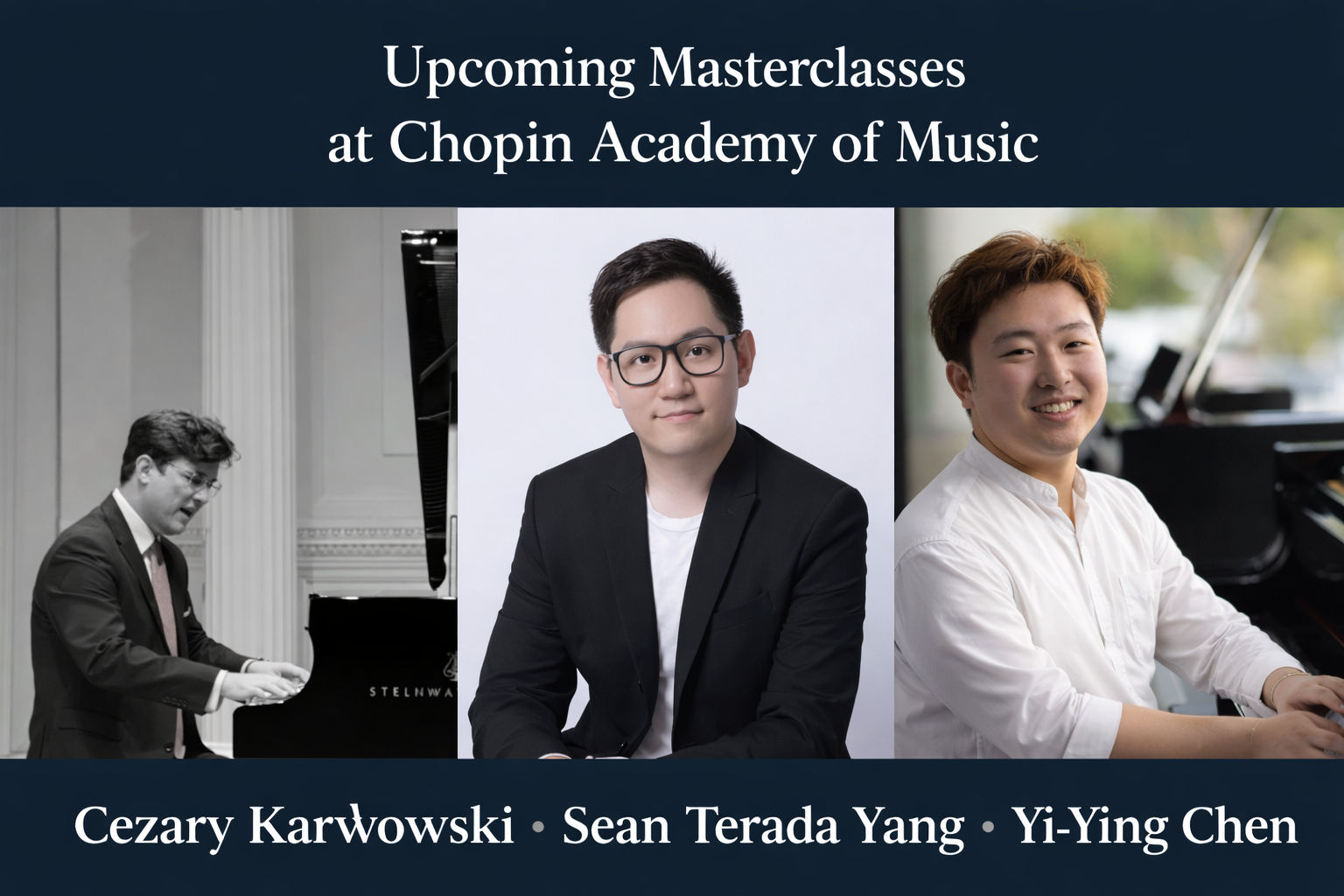 On April 25 (4:00–7:00 PM), guest artists Cezary Karwowski and Sean Terada Yang will lead a joint masterclass at the Chopin Academy, providing students with individualized feedback and insight drawn from international performance experience.